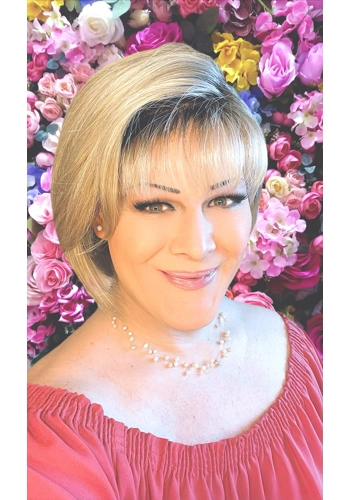 Jolie by Noriko is a classic bob and is made of those great synthetic fibers by Noriko, that are very durable. She has a Monofilament top, but no lace front. Be aware: this is not the original styling, I altered it and cut a light fringe, and I also steamed the top away from my face, since I love this look the best. :)