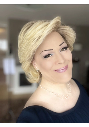 Techno Jane was the first wig by Gisela Mayer I was able to try on and review, and I was positively surprised. The craftsmanship of the cap is good. She has a full mono top and a lace front with a pinked pattern, which makes it look more natural. The fibers are heat defiant and can be styled with heat tools. She has a lot of hair, which I like and don't mind at all.