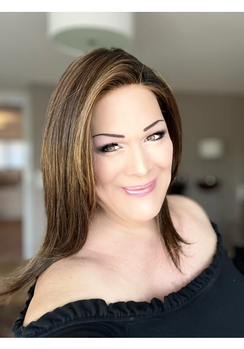 Dress Rehearsal is a style from the Lux Light Cap Collection by Raquel Welch with very luxurious features: an extended lace front, a Mono part and a mostly hand tied cap. She's also very low density. I have her in the beautiful color Shaded Hazelnut, a dark chestnut brown with highlights.