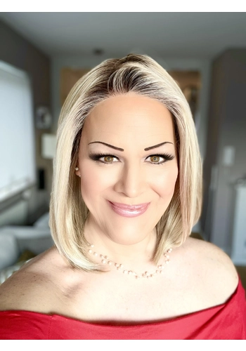 On Point ist ein klassischer graduierter Long Bob von Raquel Welch. Sie hat einen Filmansatz (Lace Front) und einen Monofilament-Mittelscheitel, den ich minimal zu einem Seitenscheitel geändert habe, da ich keinen Mittelscheitel mag. Der Filmansatz ist wie fast immer bei Raquel Welch super toll gearbeitet.