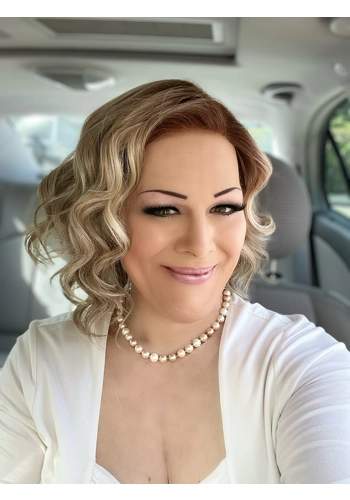 Die Biscotti Babe von Belle Tress hat traumhafte Wellen und ist knapp schulterlang. Sie hat einen Filmansatz (Lace Front) und einen Monofilament Scheitel. Ein toller Stil, nur leider tendiert sie etwas dazu, ins Gesicht zu fallen, wenn man sie nicht mit einem Clip "bändigt".