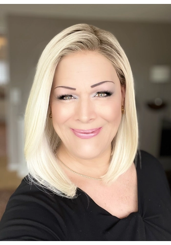 Undercut Bob is the perfect A-line long bob. The heat defiant fibers are super soft and don't shine at all. She has an extended lace front and a full monofilament top, so you can part her wherever you like. I have her in my favorite blonde 613/1001/R18.