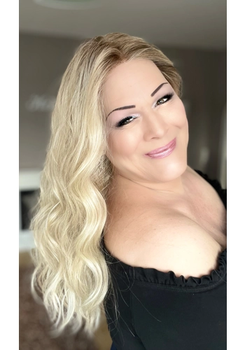 Perfect Blend is a long hair dream come true by Belle Tress with beautiful waves and 23" length. She has an extended lace front and a Monofilament center part. Unfortunately it's one of the styles that has been discontinued.