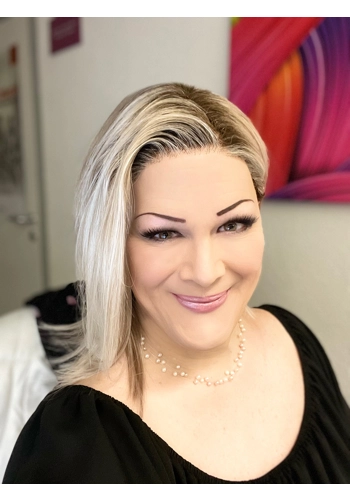 Candace by Henry Margu is a shoulder length straight style. She has a lace front and a Monofilament center part, which I have moved slightly to one side. The fibers are regular synthetic and not heat defiant. As always I have her in my favorite Henry Margu blonde "10/613GR".