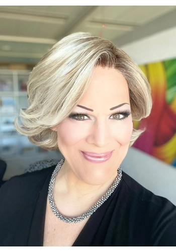 Peyton is a sweet, slightly wavy, chin length style by Henry Margu. She has a lace front and a full Monofilament top, so you're free to part wherever you like. I have her in my favorite Henry Margu blonde "10/613GR".